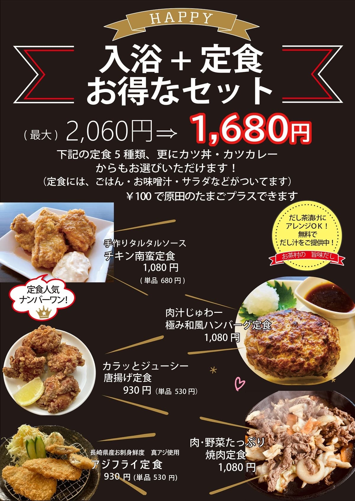 CHIKUSHITEI ランチカフェ 筑紫亭 地産食材、こだわりの食材を使用し、当店ならではの味にたどり着きました。ヘルシーあり、ガッツリありの食堂です。お風呂あがりのソフトクリームは大人にもお子様にも大人気!お得な「ご入浴とお食事のセット」もございます。