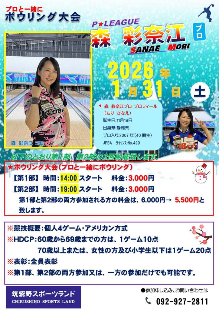 《2026年1月31(土)》森彩奈江プロご来店!!